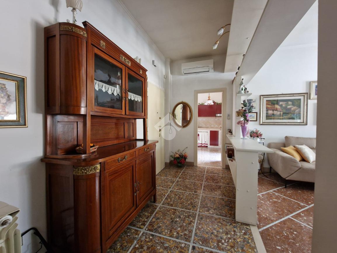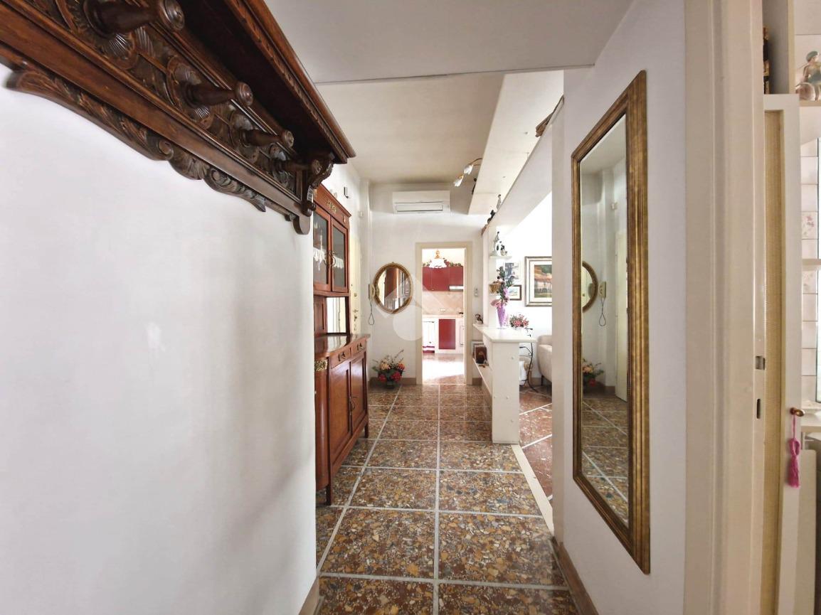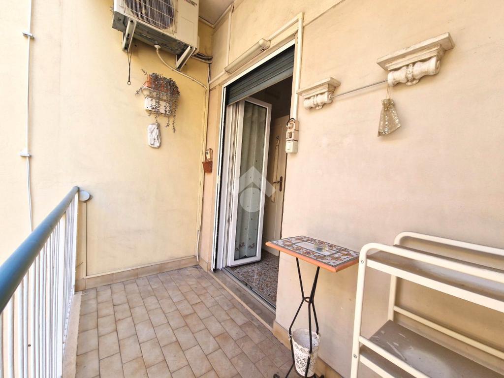 Lo stato interno è buono, la porta d'ingresso è blindata, la pavimentazione è in marmo, cucina e bagno in muratura, infissi in pvc a taglio termico e aria condizionata. Il balcone ha un'ampiezza in grado di ospitare un piccolo tavolino.